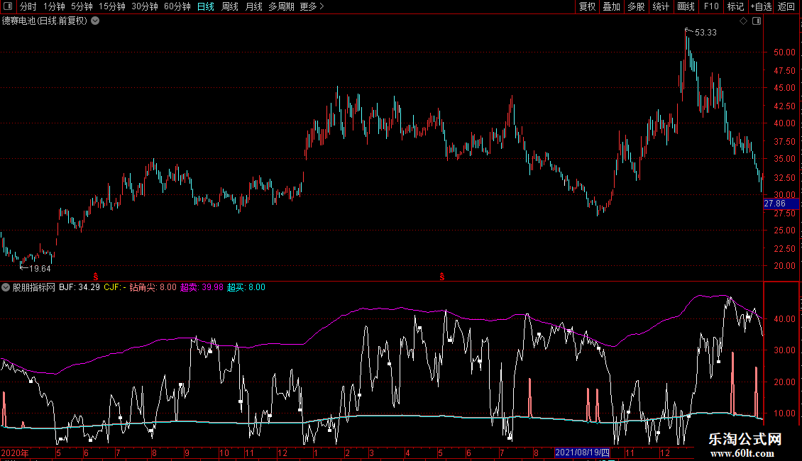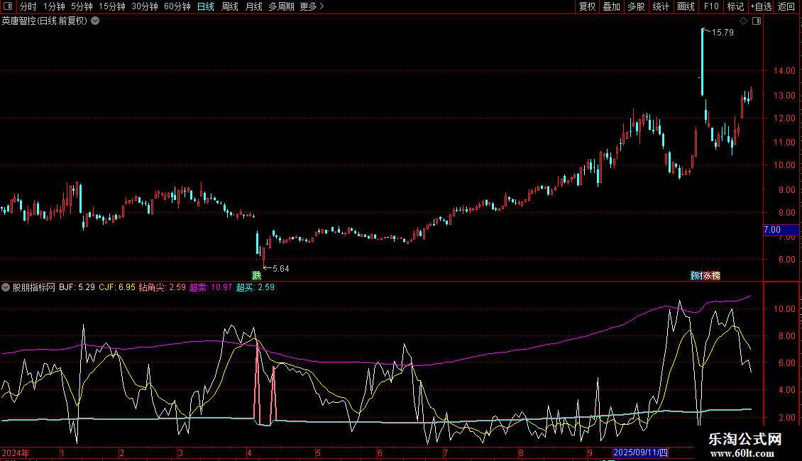 钻角尖:POW((JRB/5-REF(JRB/5,1)),8)*8000+JRB/5,COLORLIRED,LINETHICK2;