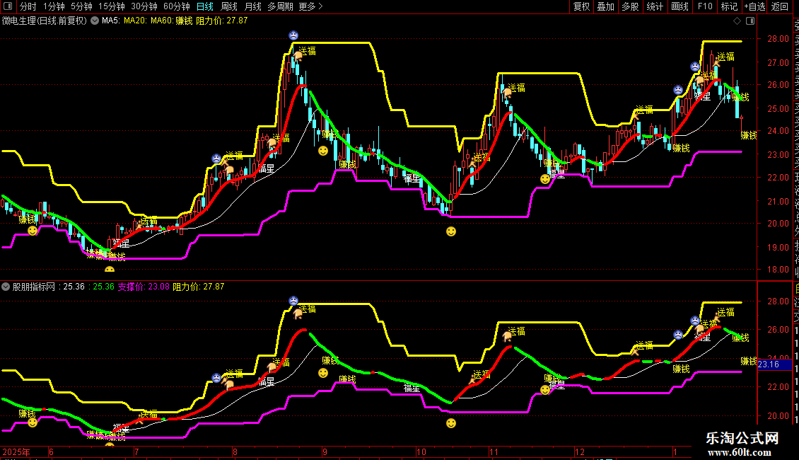 2. 关键价位:洋红粗线=【支撑价】,黄色粗线=【阻力价】,股价回踩支撑企稳做多,触碰阻力承压止盈/减仓。