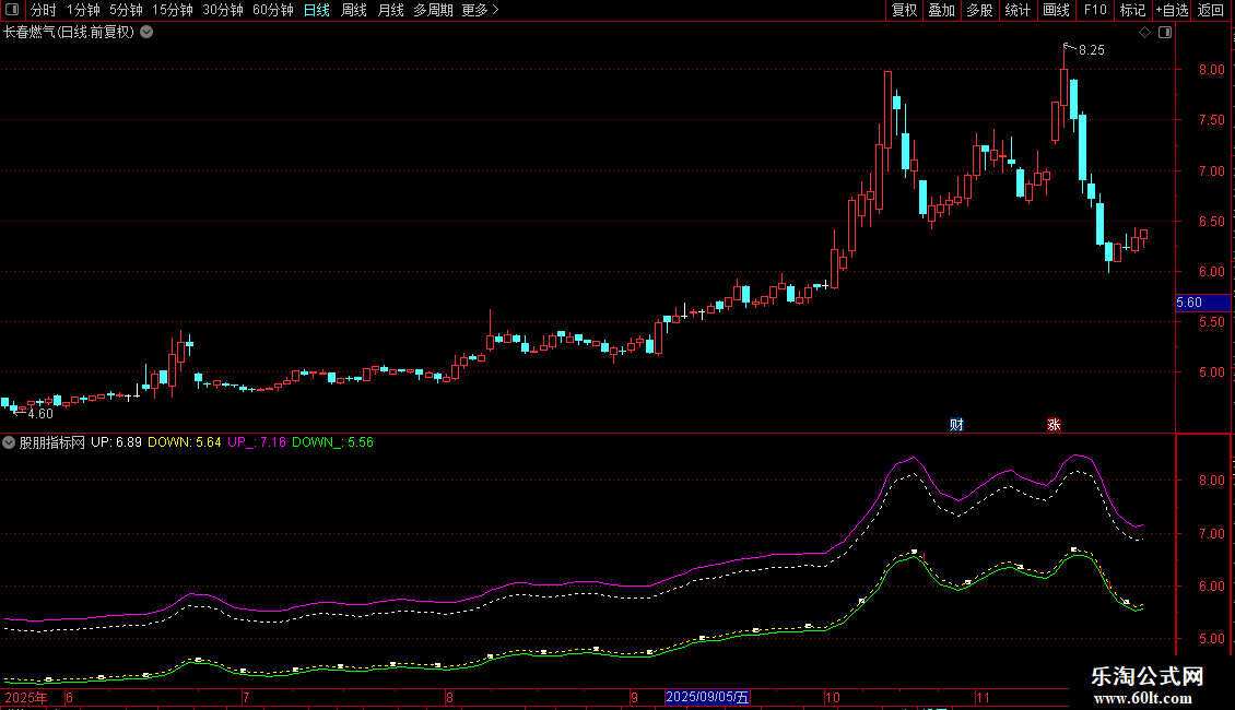 DOWN_B:=HHV(MA(C,DIF)-L,DIF)*100/REF(MA(C,DIF),LLVBARS(MA(C,DIF)-L,DIF));