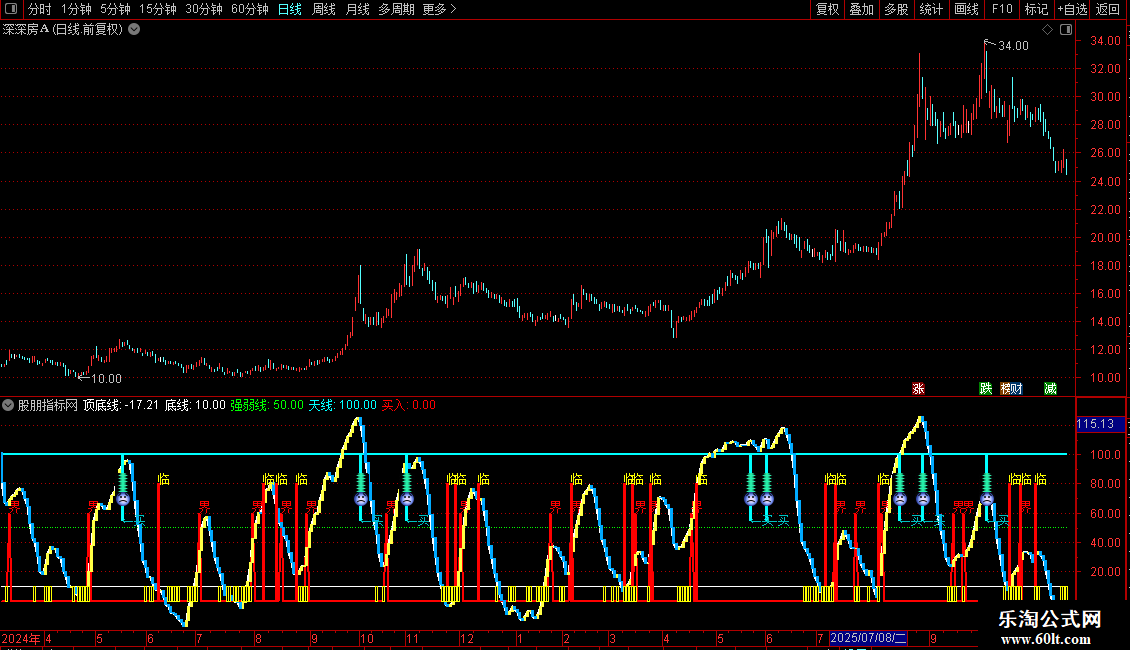 STICKLINE(REF(顶底线,1)<顶底线,顶底线,REF(顶底线,1),2,0),COLOR11BBBB;