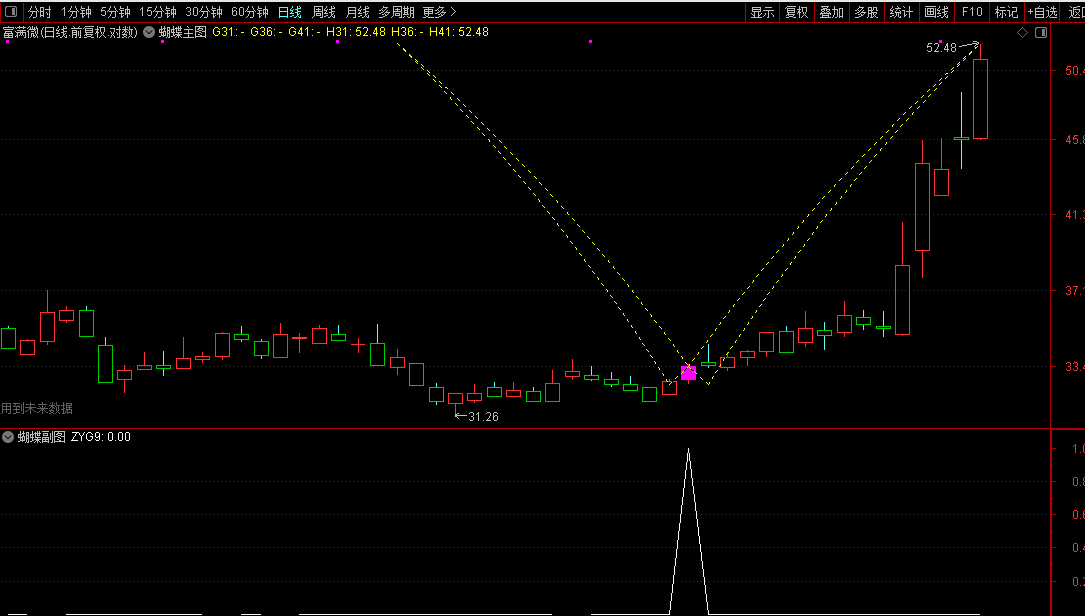通达信【蝴蝶形态战法】主副/选股某平台售价888的极品指标源码