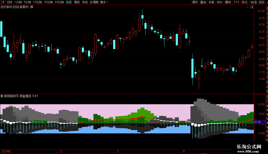 指标通过三组不同周期的MACD组合,分别捕捉短期、中期和长期的市场趋势变化,并以彩色柱状图直观显示强弱状态。同时引入大盘指数对比,结合价格高低区间估算资金流向,辅助判断主力资金进出方向。另外,通过快慢两条情绪线(红持与白减)的交叉关系,提示短线买卖时机:红线上穿白线为持股信号,下穿则为减仓信号。