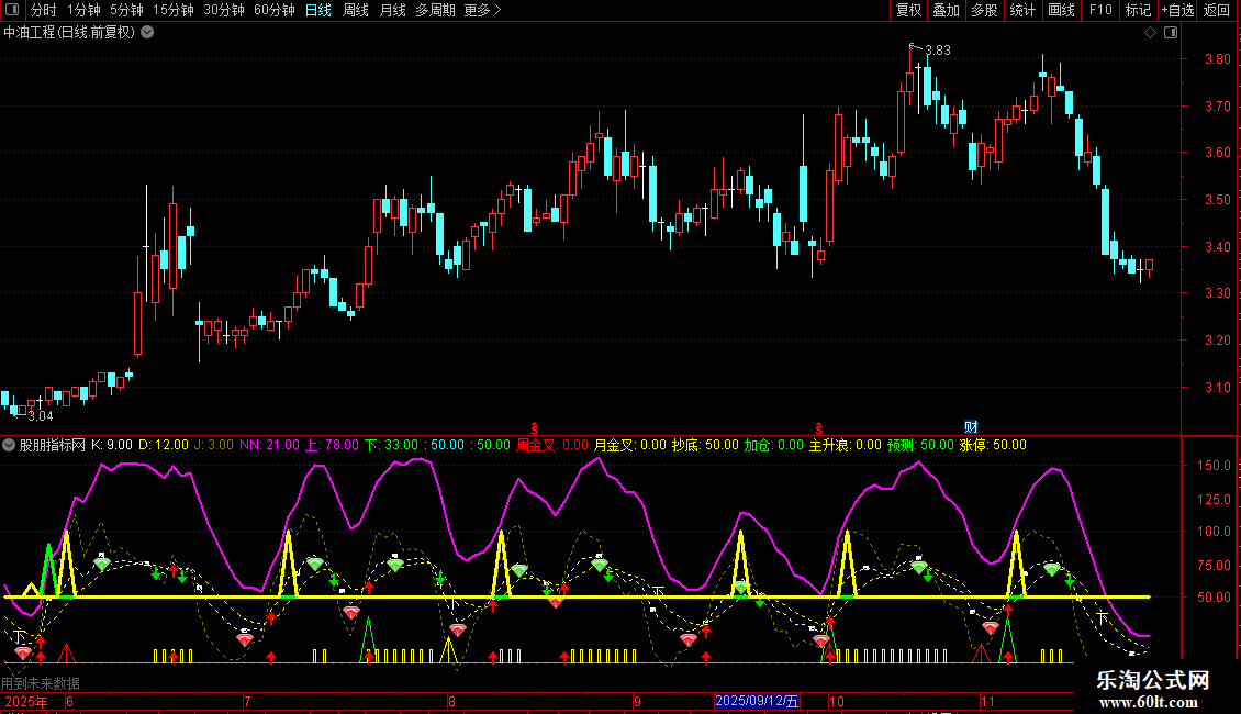预测:IF(CROSS(NN,50),90,50),COLOR00FF00,LINETHICK3;