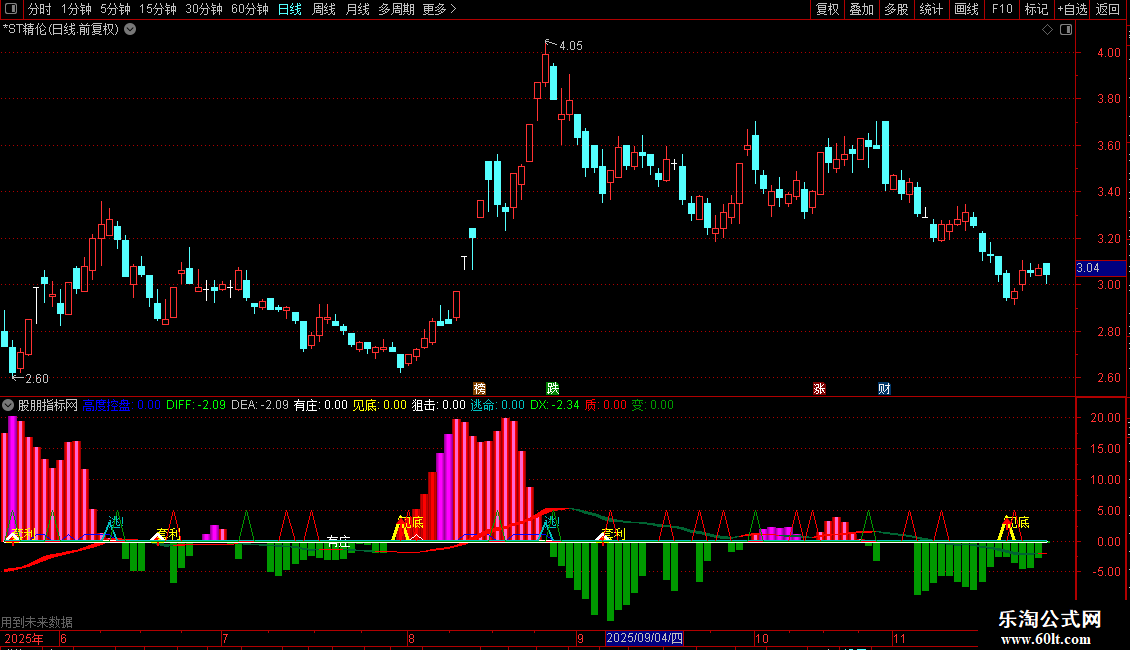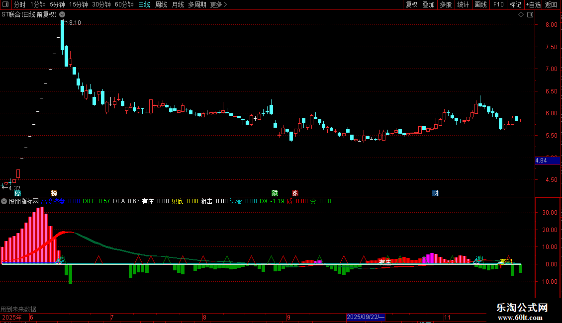 质:IF(LLV(DX,2)=LLV(DX,7) AND COUNT(DX<0,2)>0 AND CROSS(DX,MA(DX,2)),5,0),COLORRED;