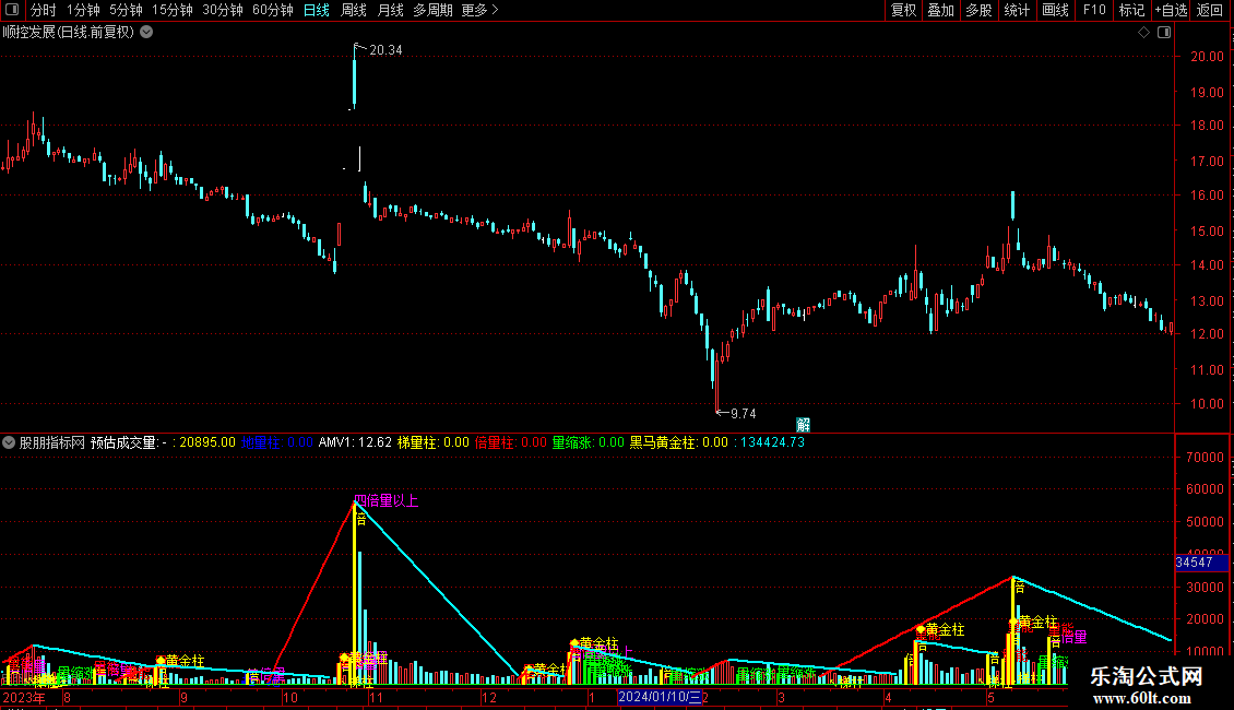 DRAWTEXT(梯量柱,VOL*0.1,'↖梯柱'),COLORYELLOW;