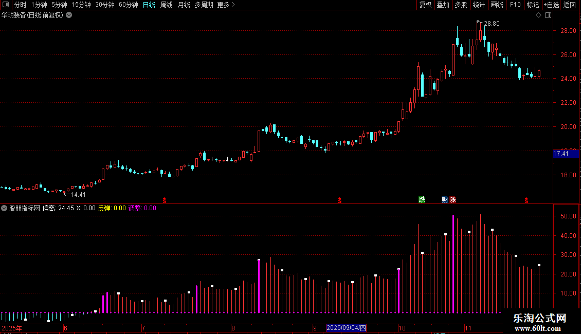 调整:IF(WR1<3 ,偏离,0),STICK,LINETHICK3;