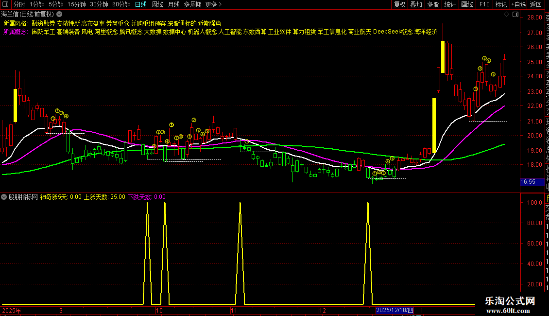 神奇涨5天:IF(X_35 AND X_40 AND X_41 AND X_42 AND X_43 AND X_46,100,0),COLORYELLOW,LINETHICK2;