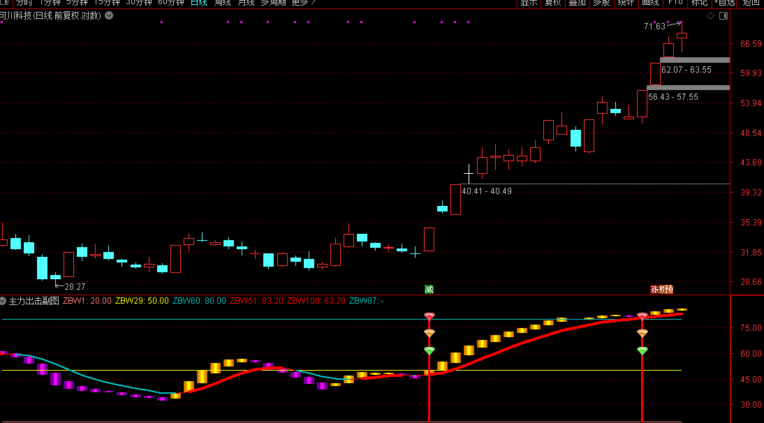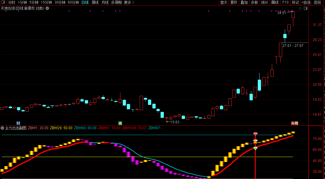 4. 信号提示:出现黄色三色图标+红色竖线,为精准主力出击信号,是核心关注节点。