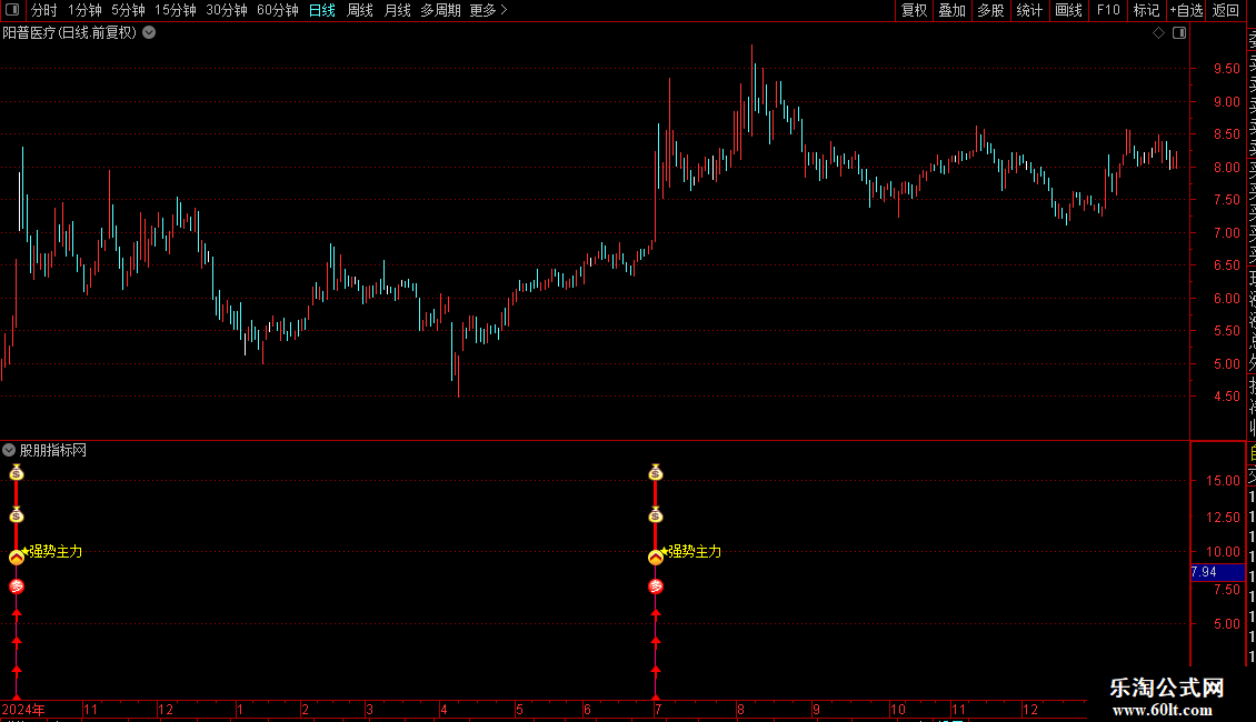 指标主要用于筛选符合主力资金偏好的强势个股。通过价格在近期高低点中的相对位置构建动量信号,结合KDJ金叉形态、流通市值规模、股价区间、非ST/创业板属性以及涨停特征等多重条件,综合判断是否属于主力重点介入的标的。当所有条件同时满足时,在副图中高亮提示“主力权重”信号,辅助投资者捕捉潜在爆发股。