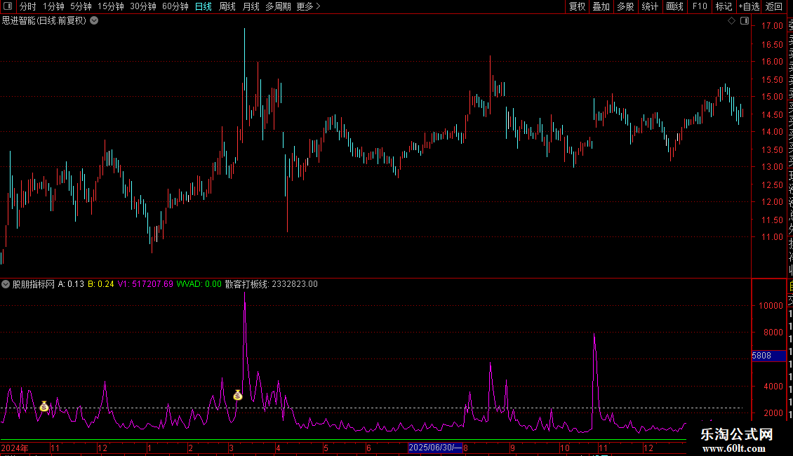 通达信【分时合力抓板】主图精准捕...