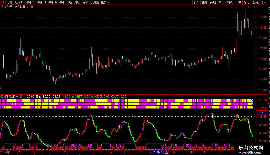 IF(波段>=REF(波段,1),0,13),COLORFF00FF,LINETHICK2;