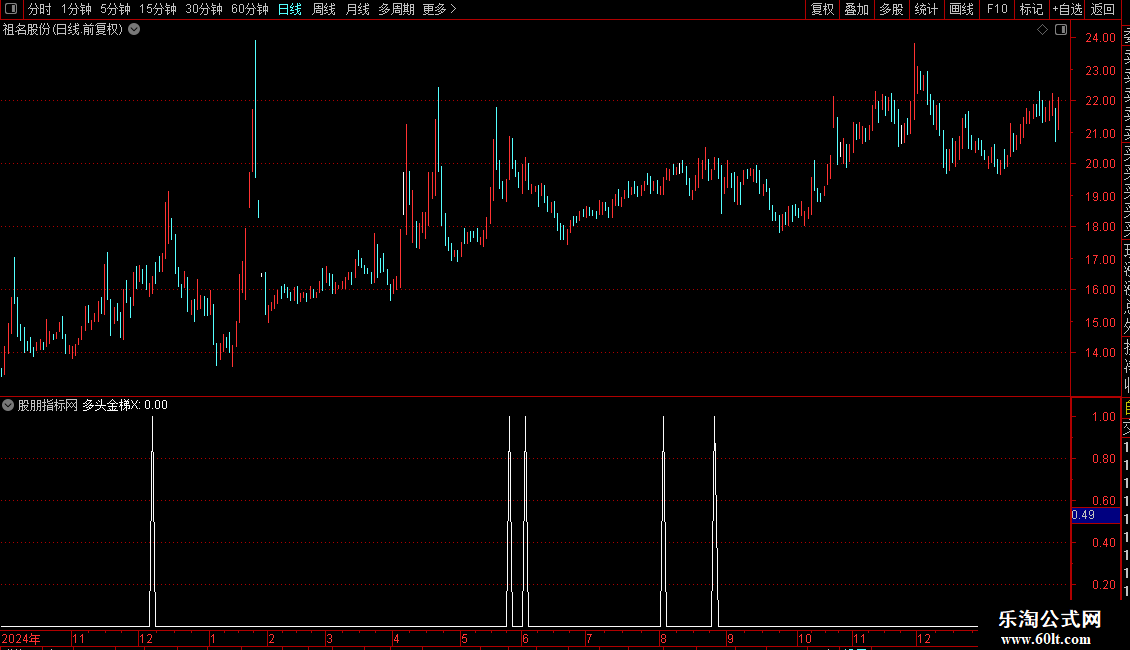 多头金梯X:REF(VAR0< VAR10 AND VAR0>OPEN,1) AND VAR0>VAR11 AND EVERY(VAR22,3) AND VAR0>OPEN AND VAR5;