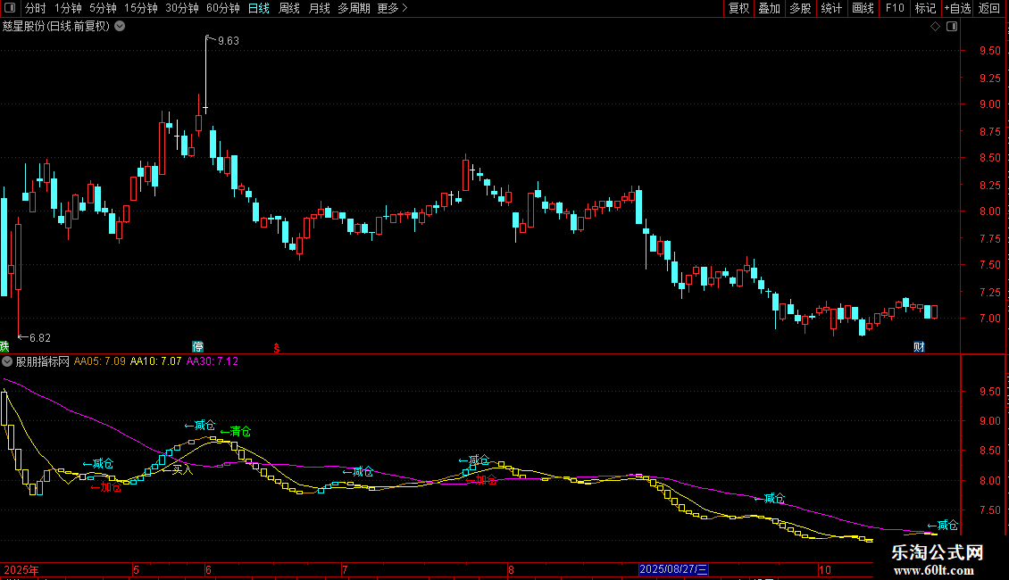 买入:=FILTER(MR,10);DRAWTEXT(减仓,HIGH*1.02,'←减仓'),COLORCYAN;