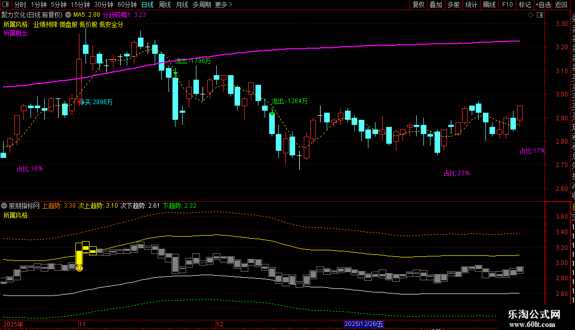 - 核心功能:动态计算资金净流入,并标注异常放量上涨/下跌节点。当“净流入”≥300万且涨幅≥4%时,标出“净买”信号;净流出≥300万且跌幅≥3%时,提示风险。