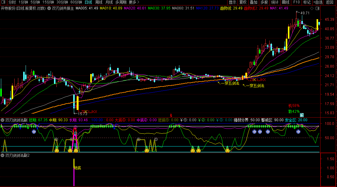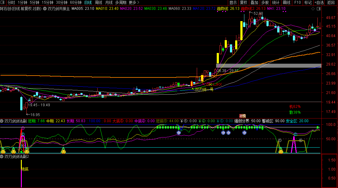通达信〖双刃剑〗1主2副3选股指标捕捉强势股起爆点刀刀见红源码