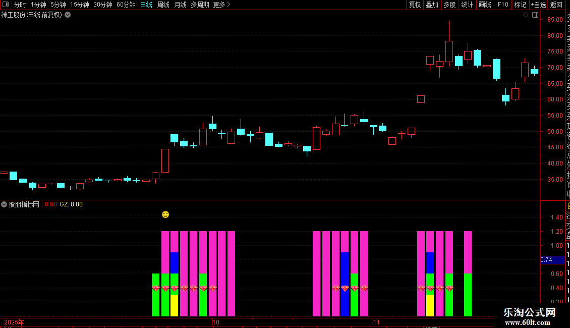 主力:=EMA((GU3-GU4)/(GU5-GU4)*100,13)*GU2;