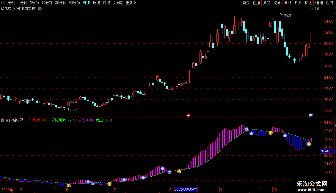 上升通道:((A25-REF(A25,1))+A25),COLORRED;