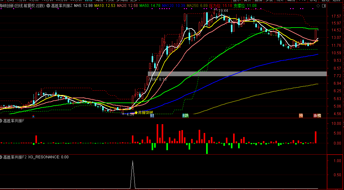 通达信『高胜率共振』主副/选融合筹码压力位阳线突破与趋势共振源码