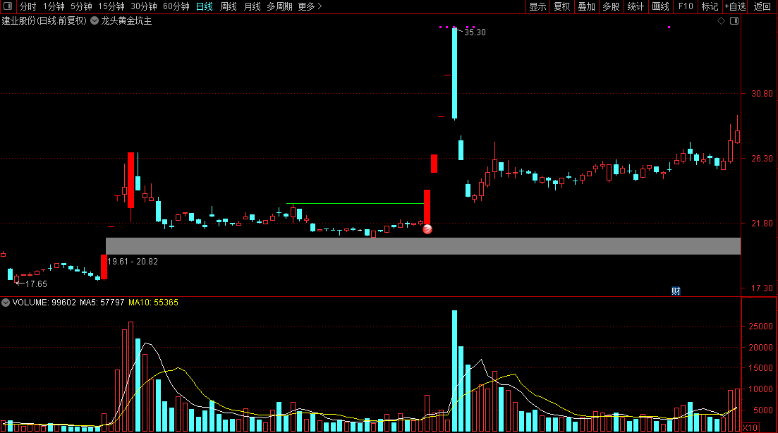 主图红色圆球是选股信号,绿色水平线是前期压力位,是前期的高量位置,高量后挖坑,重新突破,是这个思路的逻辑,主图中红色实体k线是涨停板标注,这个思路基本上可以把握大部分的妖股启动点。