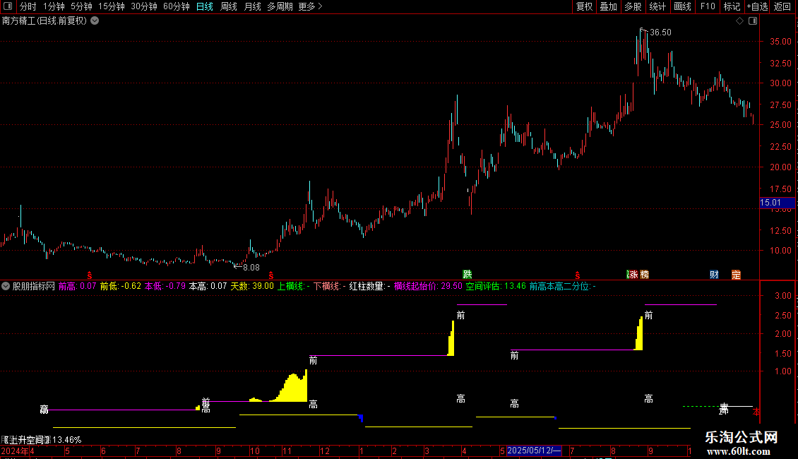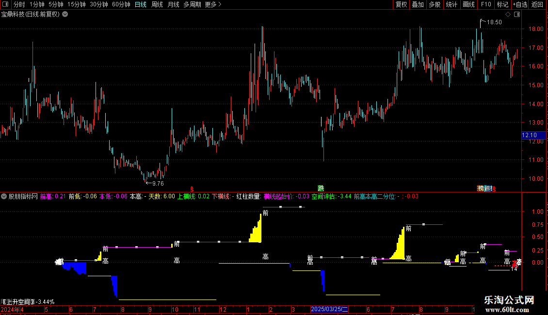 前高本高二分位:IF(MACD>0 AND 本高!=前高,DRAWLINE(WQG,(前高+本高)/2,REF(WQG,1),REF((前高+本高)/2,1),1)