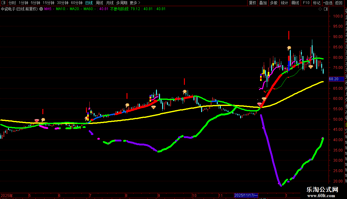 ZBGS329:=IF(ZBGS327>ZBGS328 AND ZBGS326< ZBGS325 AND (ZBGS316>50 OR ZBGS316>REF(ZBGS316,1)),(-40),0);