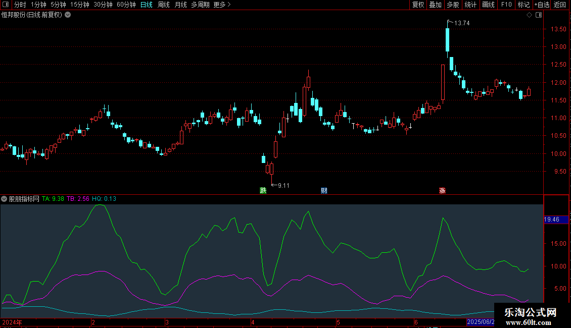 TA1:SUM(MAX(CLOSE-AX,0),14)/SUM(ABS(CLOSE-AX),14)*100,COLORYELLOW;