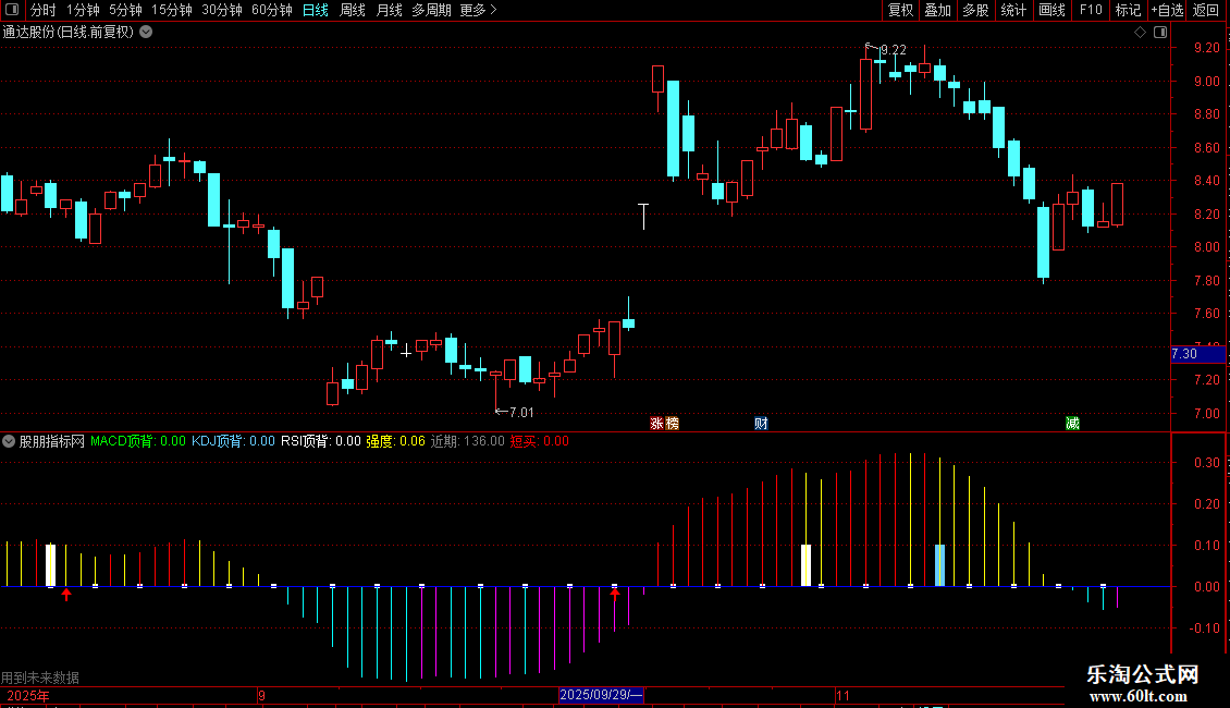 MACD顶背:IF(D1>0,0.1,0),COLOR00FF00,POINTDOT;