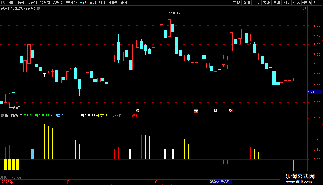 RSI顶背:IF(D3>0,0.1,0),COLORWHITE,POINTDOT;