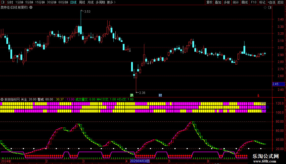 DRAWTEXT(CURRBARSCOUNT=3,103,'KDJ'),COLORFF0000;