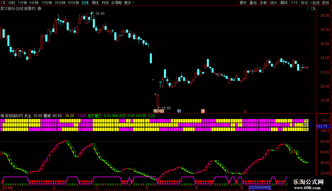 IF(趋势>=REF(趋势,1),0,13),COLORFF00FF,LINETHICK2;