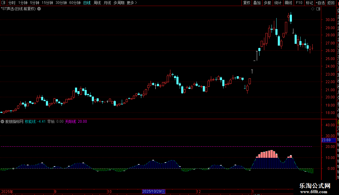 STICKLINE(核能线>20,20,核能线,3,0),COLORRED;