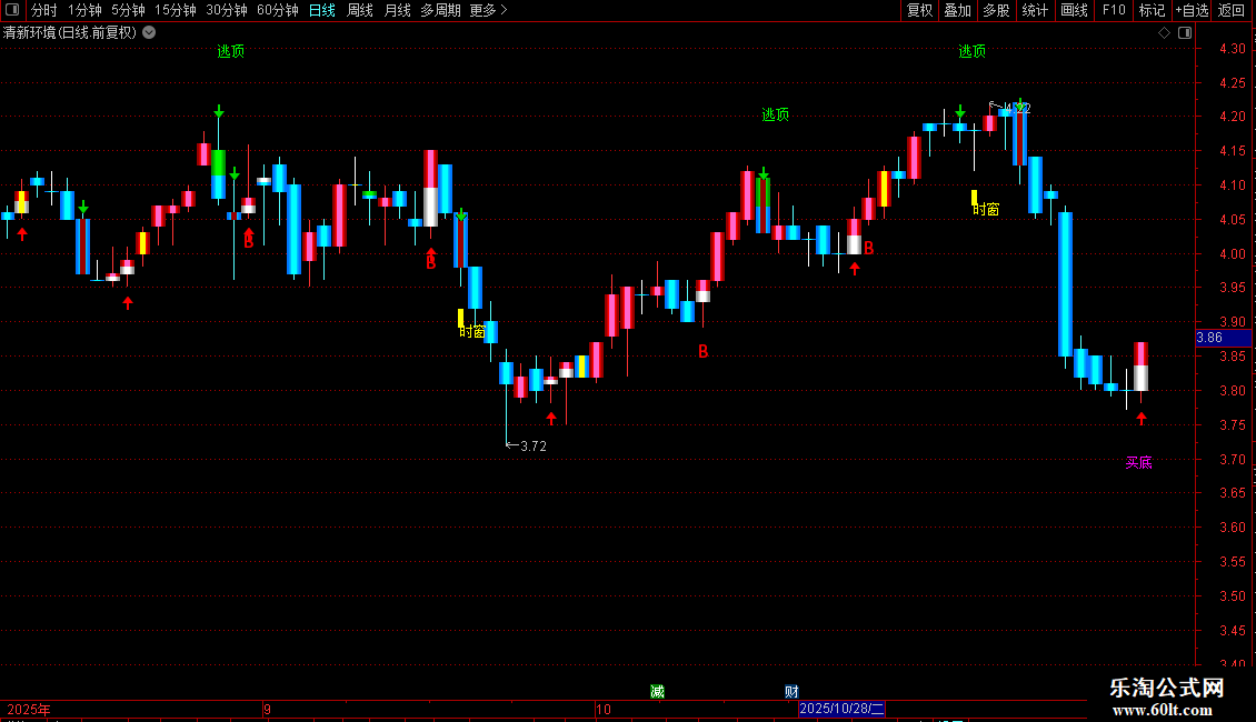 DRAWTEXT(TJ4,H*1.02,'逃顶'),COLORGREEN;