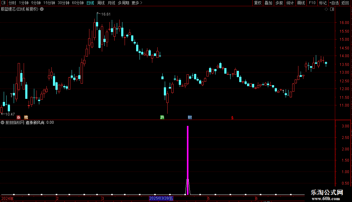 短期底部:=LLV(HIGH,30),LINETHICK2,COLOR0000FF;