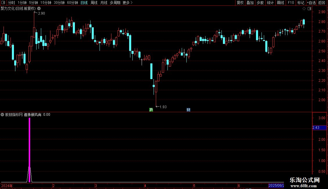 压力位:=IF(CROSS(J24,J),HIGH,REF(HIGH,BARSLAST(CROSS(J24,J)))),COLOR00FF00;