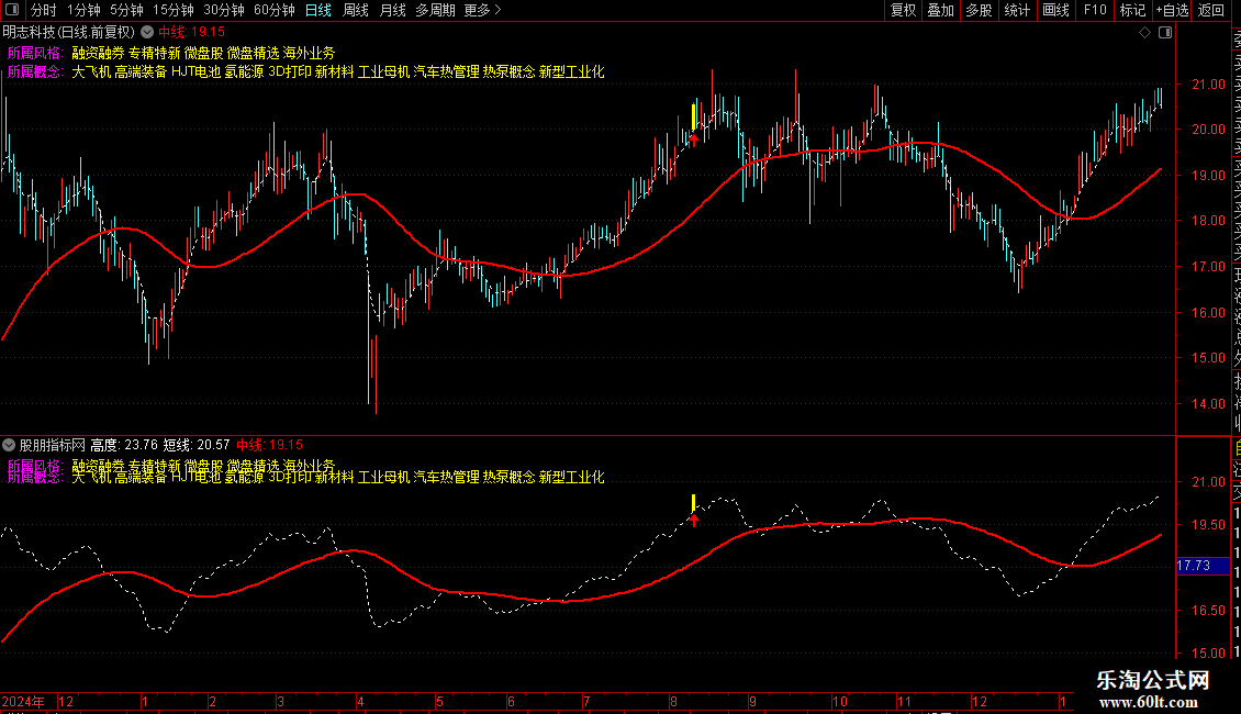 御龙指路:=BARSLASTCOUNT(高度>0 AND 高度>=50)=1 AND MACD.MACD>0 AND ZC AND 去昨天;