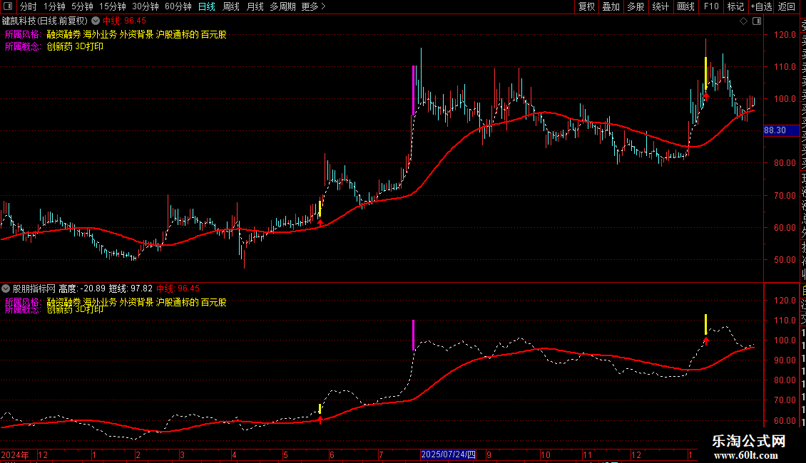 中线:EMA(X,34),LINETHICK2,COLORRED;