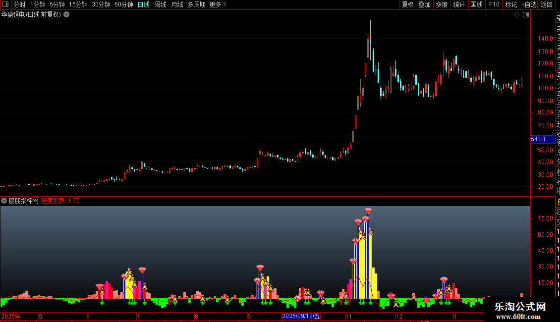 强度指数:ROUND2(FF*100,1) COLORRED;