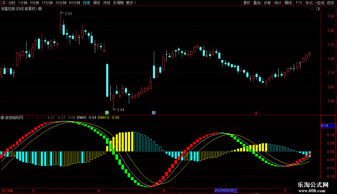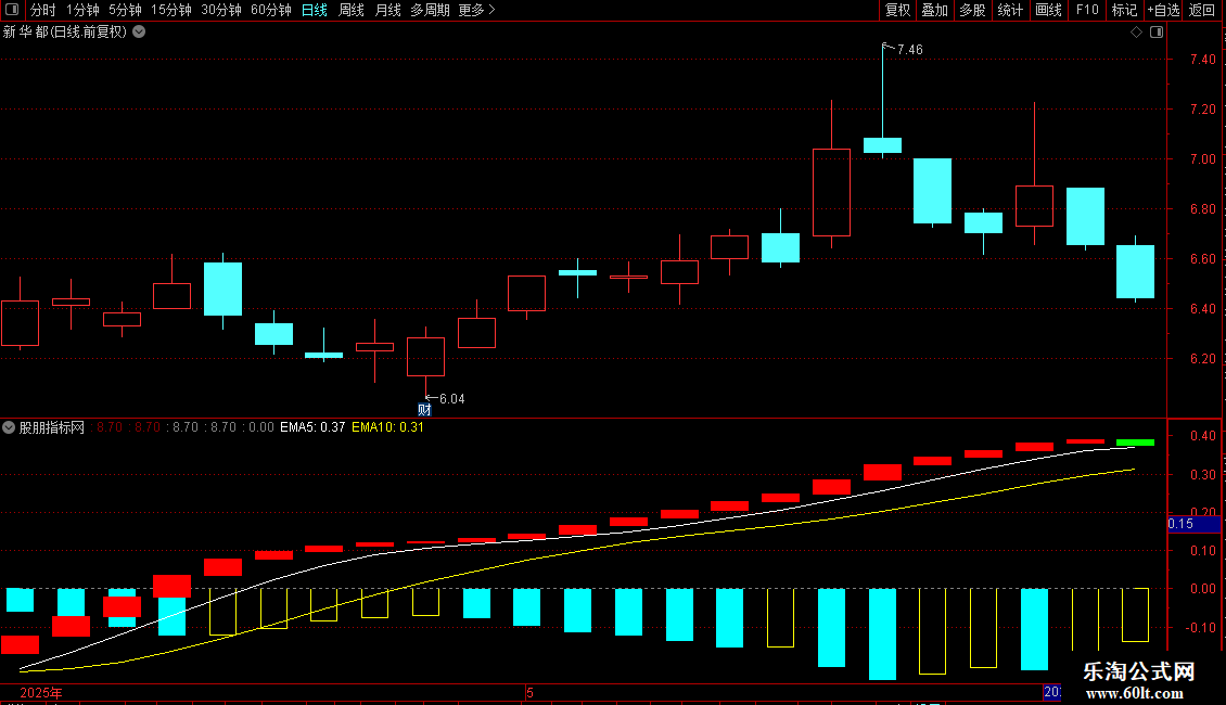 同时绘制了“LC”的5日和10日移动平均线(EMA5、EMA10)。