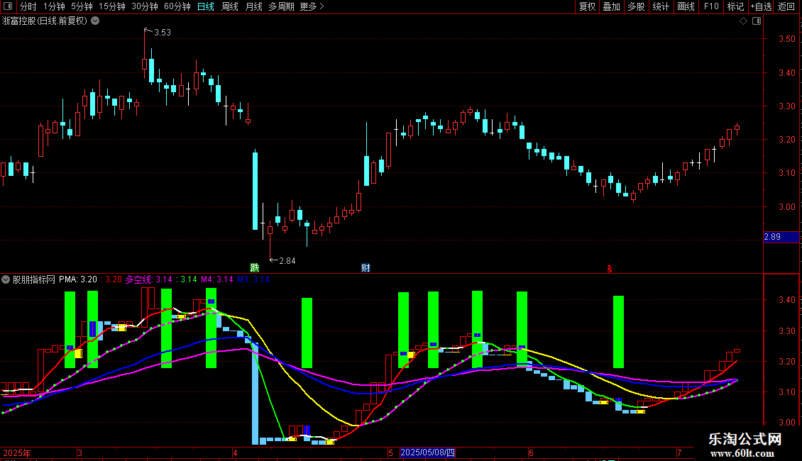 非常敏感的短线买卖点,黄色买进,绿色卖出!无未来!