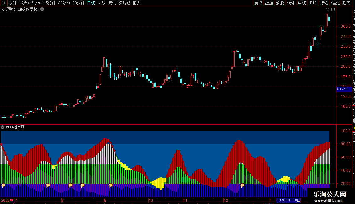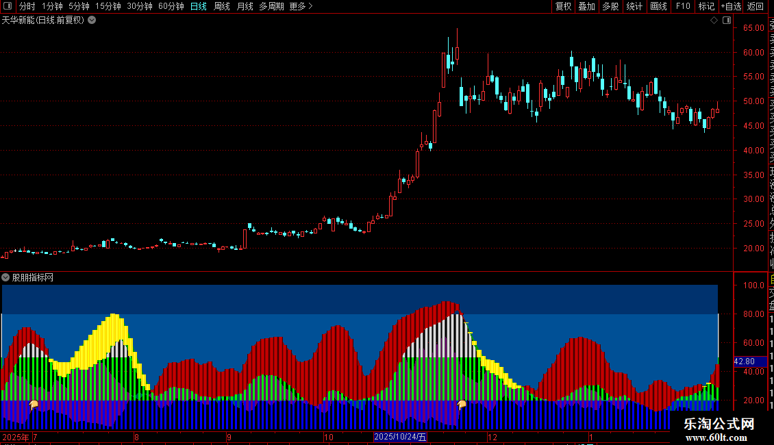 2. 多指标共振验证:KDJ指标的D线与ADXR线的柱体对比为关键共振信号——红色系柱体(D>ADXR)代表多头动能占优,蓝白色系柱体(D<ADXR)代表空头动能占优,柱体形态越明显,动能共振越强。