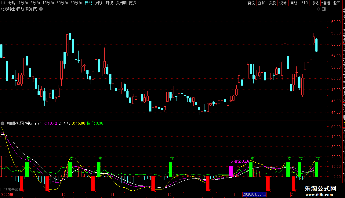 大资金活动信号:结合价格、成交量与特定摆动指标(VARF/VAR10),在疑似有大资金进场时,标注“大资金活动”并绘制洋红色柱状线。