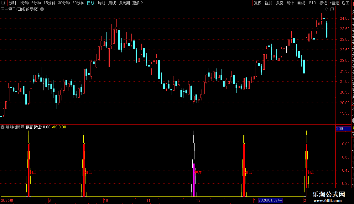 使用方法:加载至通达信副图。当指标在低位出现红色的“关注”或“狙击”信号柱时,表明个股可能处于起爆临界点,可结合趋势与盘面情况予以重点关注。
