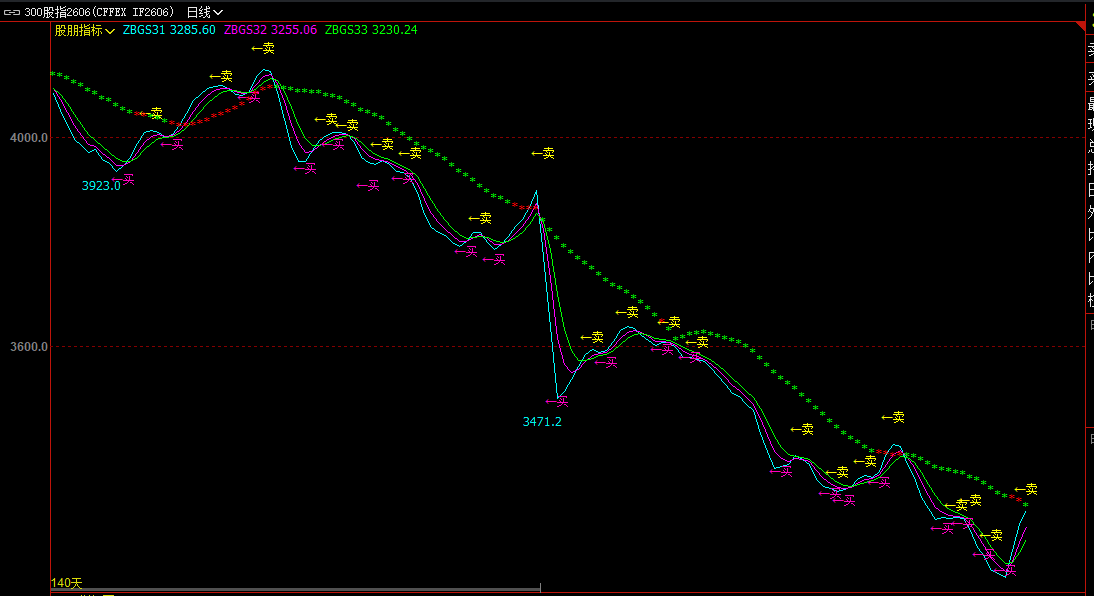 DRAWTEXT(ZBGS29,REF(CLOSE,1),'←买'),COLORMAGENTA,VALIGN0;