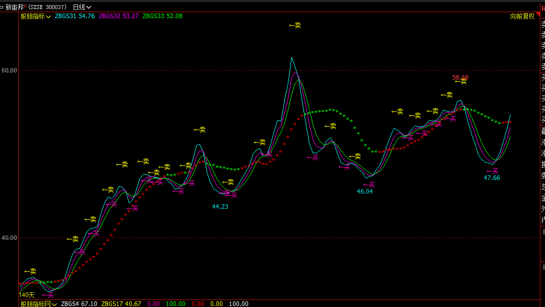 3. 20日均线(ZBGS34)上的红绿星辅助判断趋势:红星(价格站上均线)偏多操作,绿星(价格跌破均线)偏空操作;