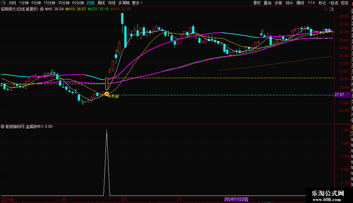 本金底锁牛指标为主图综合操盘指标,兼顾趋势研判 精准买点信号 量能资金分析 多周期共振四大核心功能,适用于A股股票日线级别分析,是通达信趋势波段型+持仓综合型主图指标,所有信号均为精准买点提示类信号。