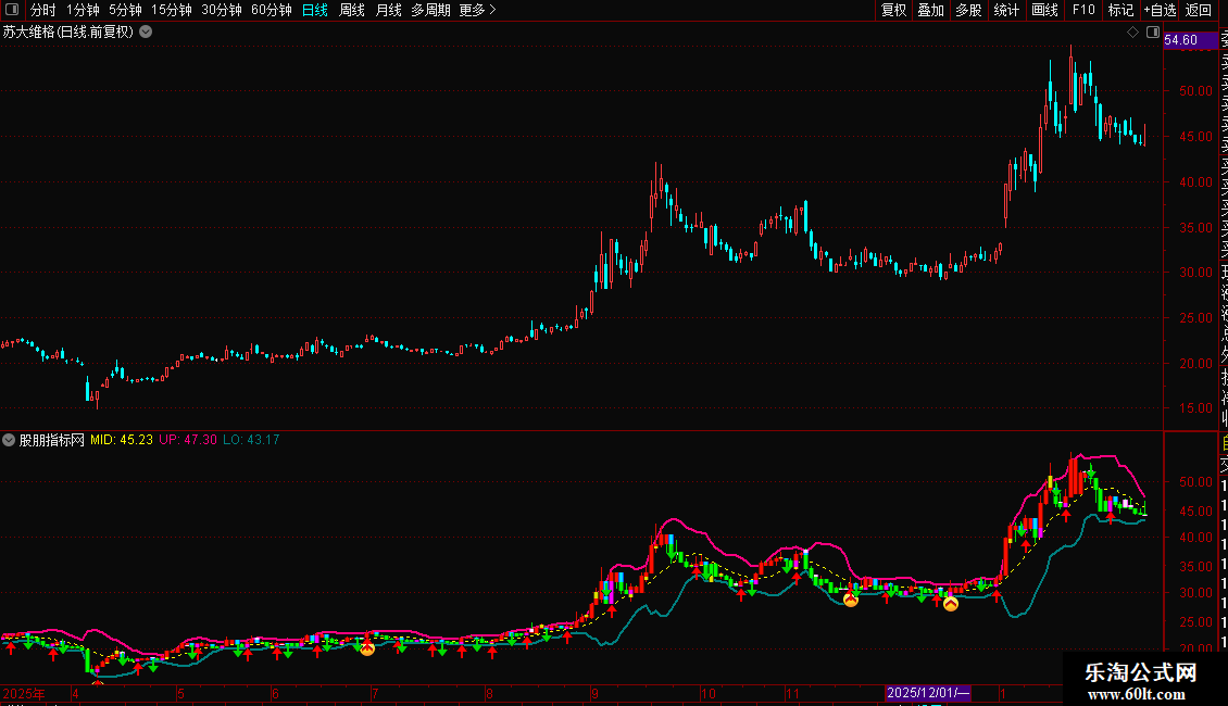 趋势与通道:首先观察股价相对于布林通道的位置和通道宽度,判断当前趋势强度和波动率。