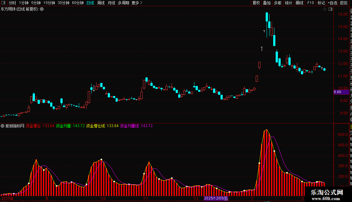 核心观察:关注红色粗柱线(资金增仓) 的出现及其高度,它表示经过公式模型判断后,符合条件的资金流入强度。
