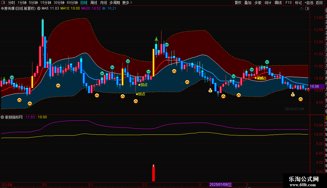 2. 副图:出现红粉柱+黄色“拐点确认”,代表首板条件达标,可重点关注。