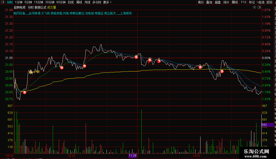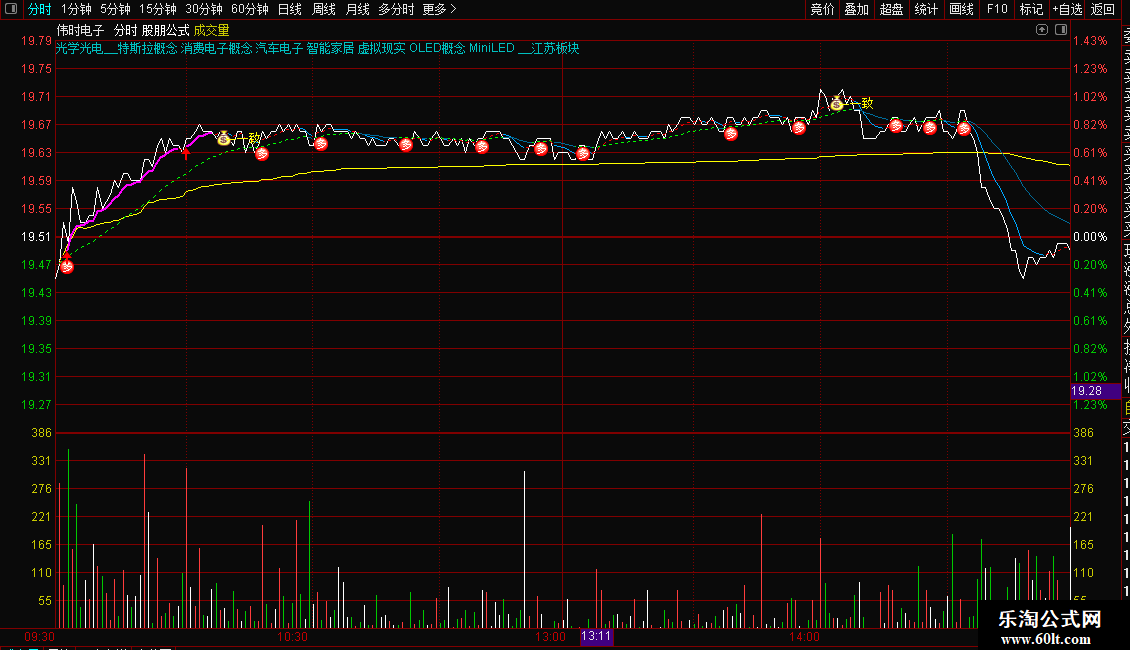 1. 信号识别:分时图中出现黄色“一致”图标,代表主力资金形成做多一致,是核心追涨信号;粉色“牛”字+图标,提示符合量价齐升、突破关键价位的捉牛机会;绿色“支撑”标注EMA26均线,黄色图标提示支撑有效,红色图标提示突破有效。