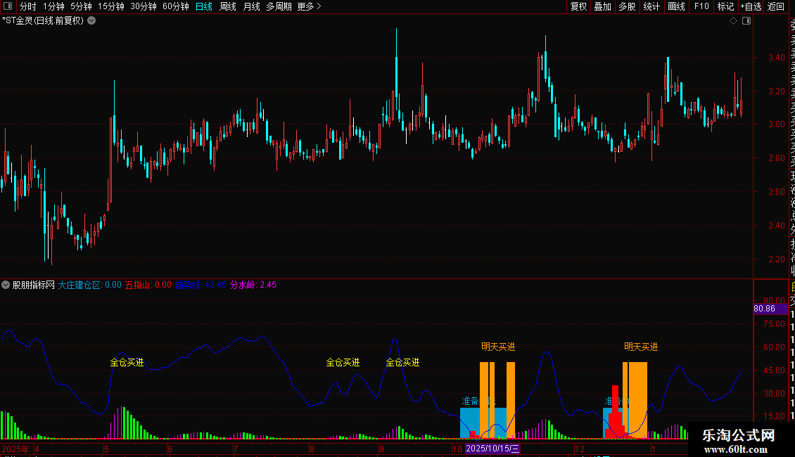 “五指山”:在股价接近阶段低点且“趋势”值较低时,结合价格波动率,用于捕捉可能的主力建仓信号。当指标出现红色柱状线时,提示关注。